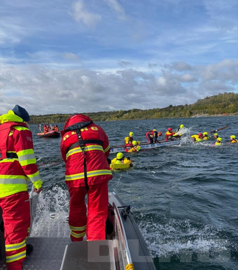 Dort konnten die Wasserretter das Fahren mit einem Drachenboot, sowie einen Kentervorgang üben.